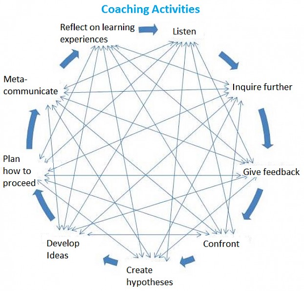 The activities outlined above are the coach's main activities. That obviously does not exclude that, in certain kinds of situations, there are also other types of activities that can be useful to achieve once established coaching targets. Professional coaching is a skill that requires a high degree of flexibility. It always depends on a particular setting and it always has to be oriented to your coachee's needs. This also means that the targeted activities do not follow a previously planned process scheme. Even if, as illustrated above, there are some typical stages to the coaching process: The art of coaching is to have a feeling for what would be best and most helpful at the moment. That is why the described activities may be all together adapted for a specific setting. All of them can be interconnected. All of them can follow any of them and each of them can be important in any part of the coaching process.