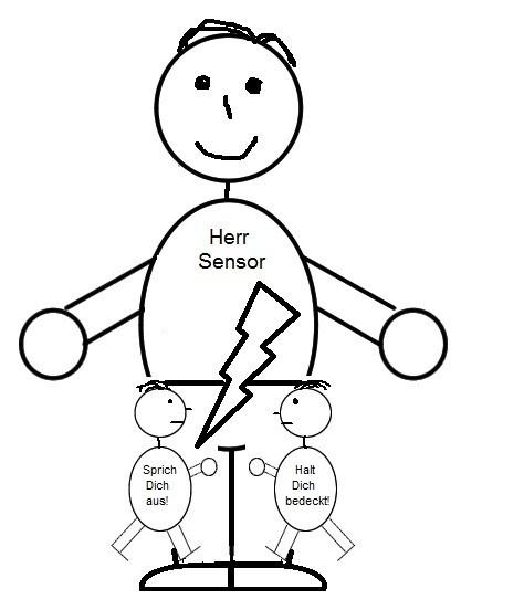 Herr Sensor erzählte mir dann von einer für ihn höchst bedeutsamen Begebenheit, die über 20 Jahre zurücklag. In seiner Studienzeit war Herr Sensor Mitglied der studentischen Selbstverwaltung. Während einer größeren Sitzung, bei der die Mitglieder der Selbstverwaltung und viele andere Studierende anwesend waren, gab es Personen, die anlässlich eines bestimmten Agendapunktes sehr massiv homosexuellenfeindliche Parolen äußerten. Herr Sensor, der mir erzählte, dass er schwul sei, jedoch zu der damaligen Zeit sehr versteckt mit seinem Schwulsein umgegangen sei, berichtete, dass er in der Situation sofort die Notwendigkeit gespürt habe, deutlich etwas gegen die vorgebrachten Parolen zu sagen. Gleichzeitig habe er aber große Angst gespürt und sich außer Stande gefühlt, auch nur ein Wort von sich zu geben. So schwieg er während der gesamten Zusammenkunft, konnte sich dies allerdings niemals mehr wirklich verzeihen. Herr Sensor sagte, dass in all den Situationen, in denen er heutzutage Blockaden erlebte, wohl etwas Ähnliches wie damals abliefe.